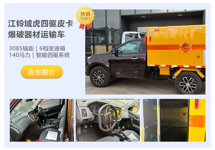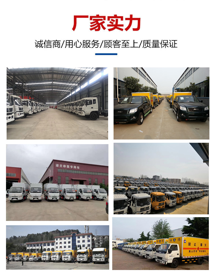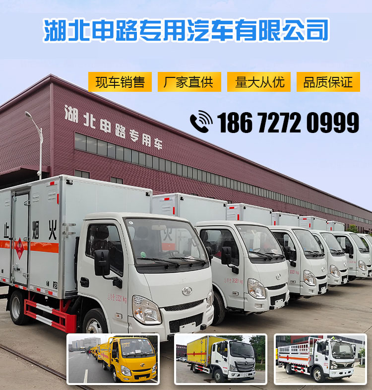 湖北申路专用汽车有限公司主要生产爆破器材运输车,炸药运输车,雷管运输车 ,气瓶运输车,易燃气体运输车,易燃液体运输车 ,腐蚀品运输车,所有1-9类危险品运输车(售前咨询热线:18672720999)。公司产品品种及生产规模不断扩大,所生产的各式汽车参照国内外先进样机设计, 外型美观,结构合理,具有自重轻,使用安全,承载力强等性能特点,达到了国际水平。